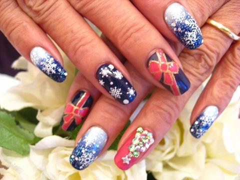 お色はネイビーとゴールドで、お花のアートやストーンの部分がとても可愛いですね![]()